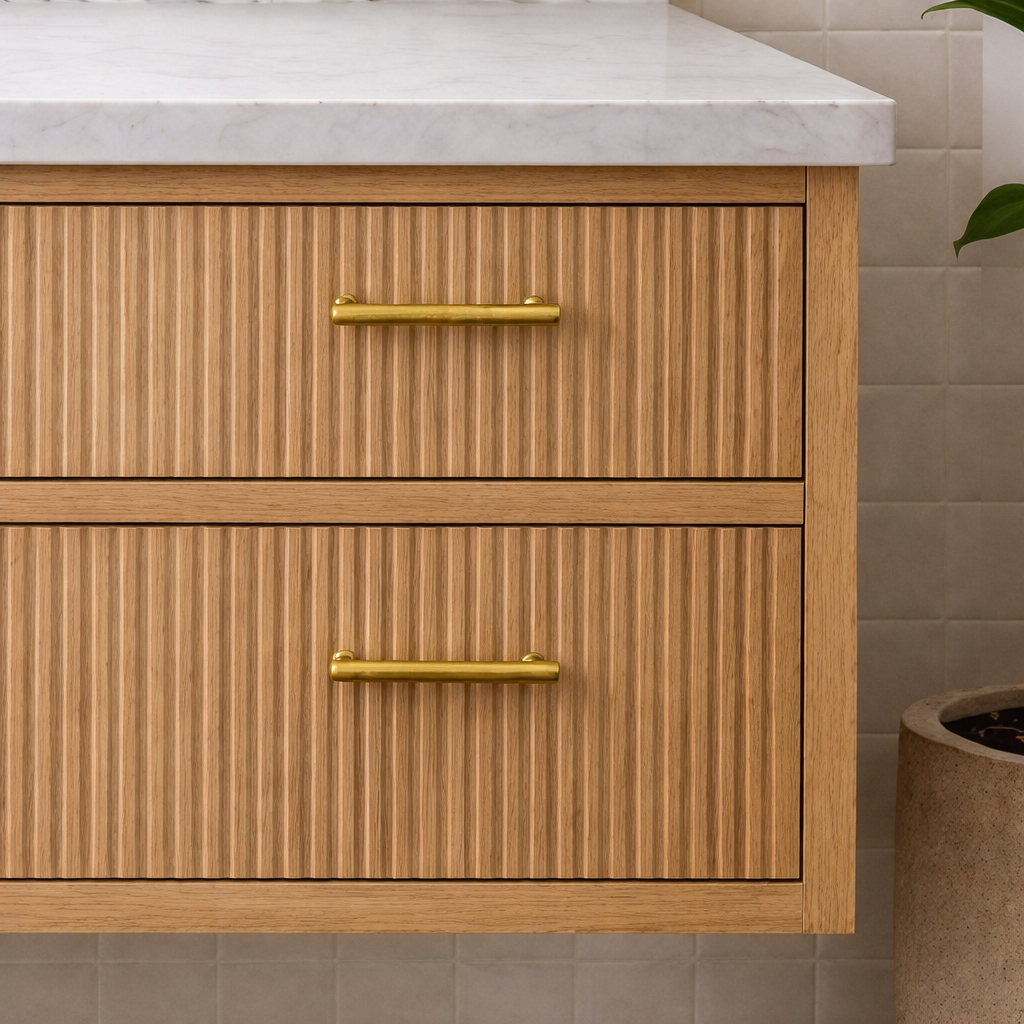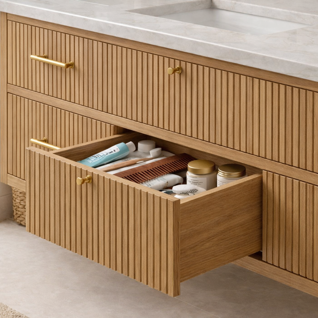 Modern Wooden Bathroom Vanity With Fluted Drawer Fronts For Bathroom