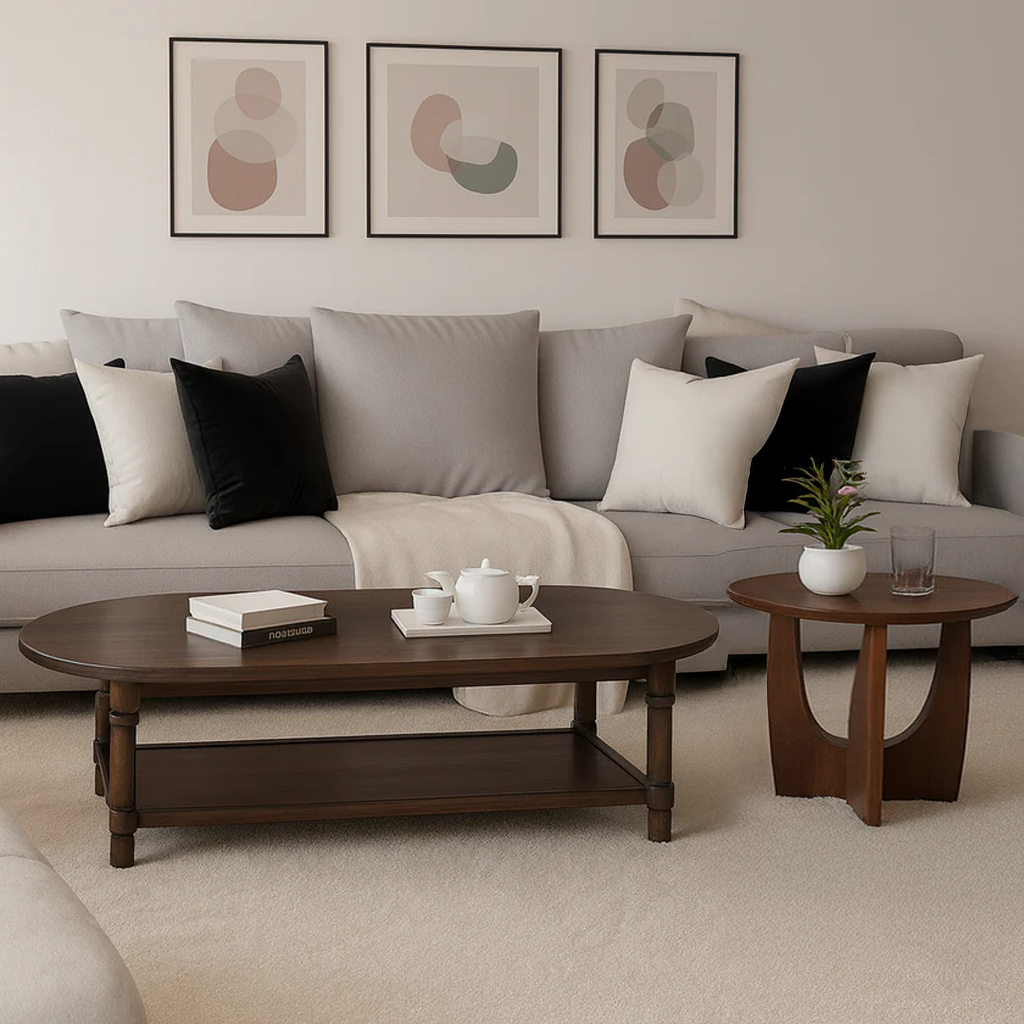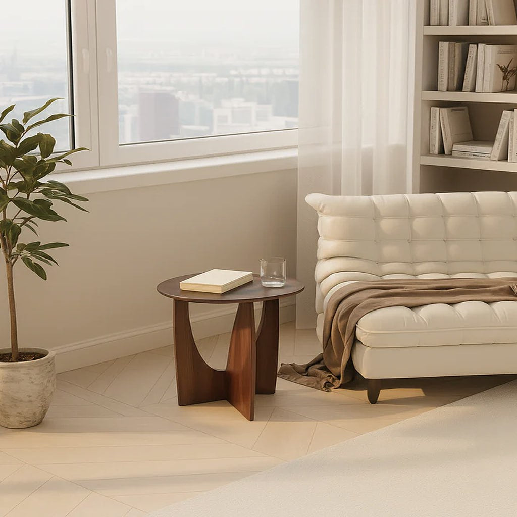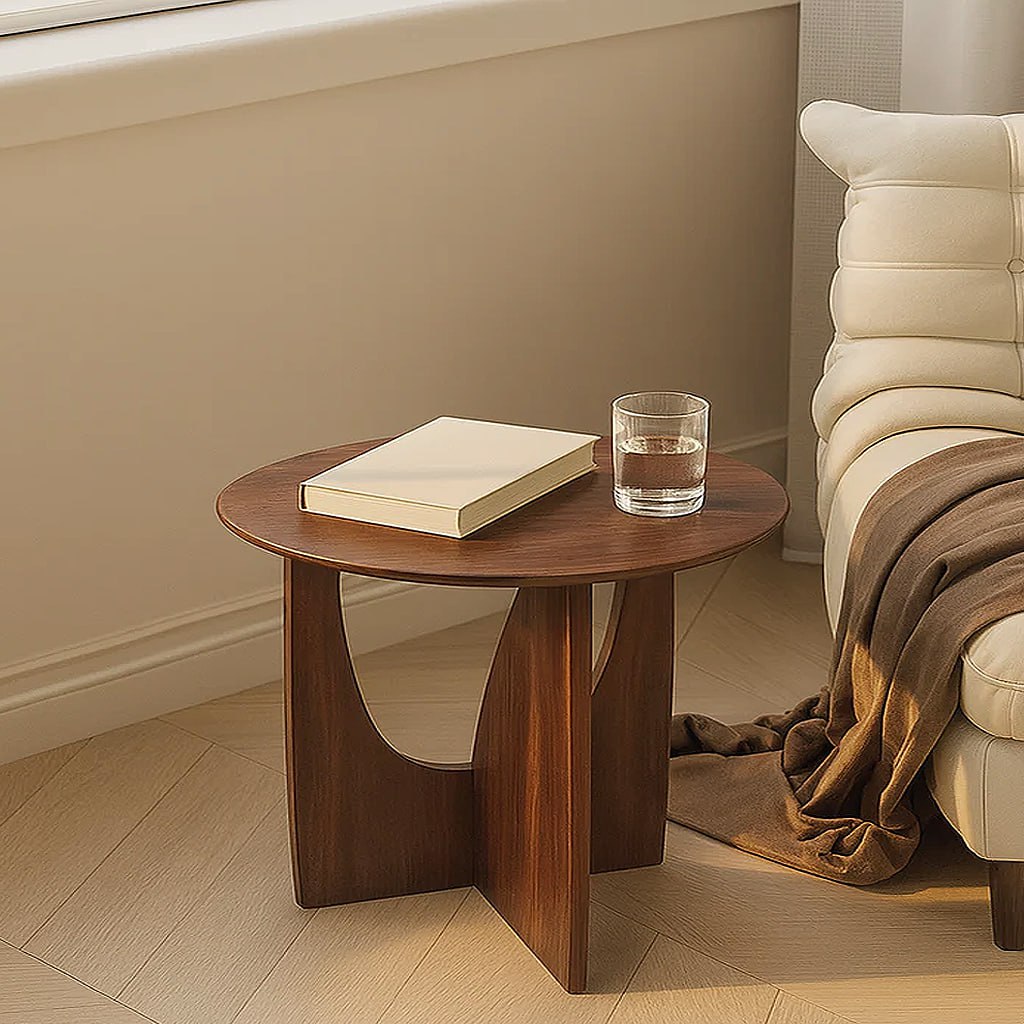 Bring warm, modern character to your living room with our Modern Wooden Round Side Table With Sculptural Cut-Out Base, designed as a compact perch for books, drinks, and everyday essentials. With its smooth round top, rich wood tone, and architectural base, this table adds a refined yet relaxed accent beside your sofa or lounge chair.