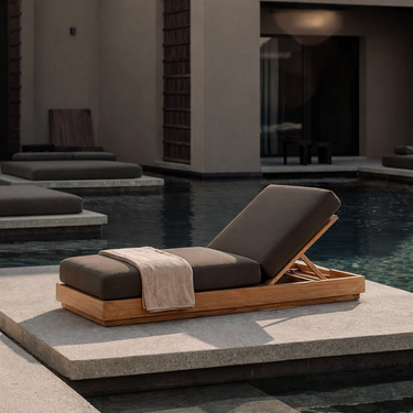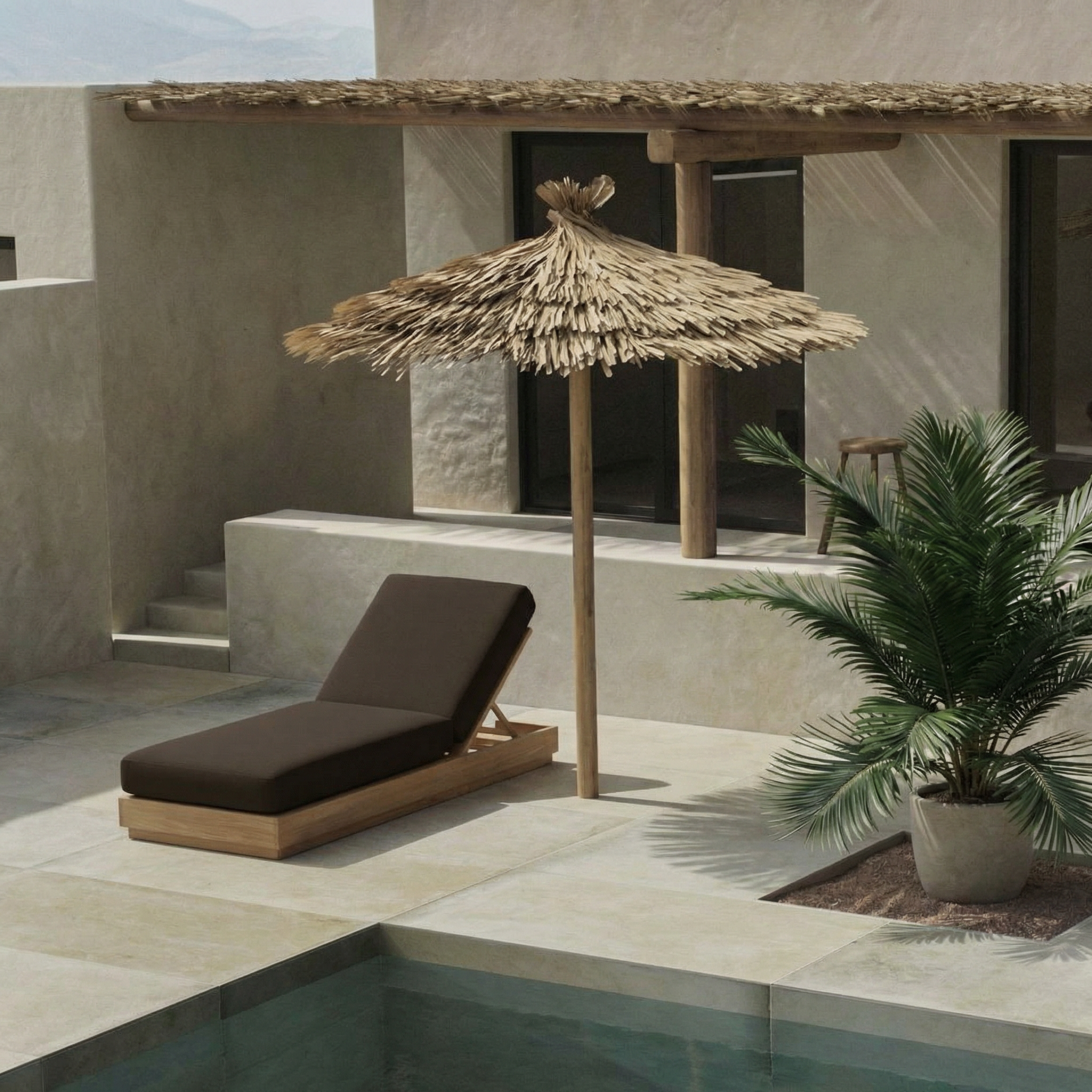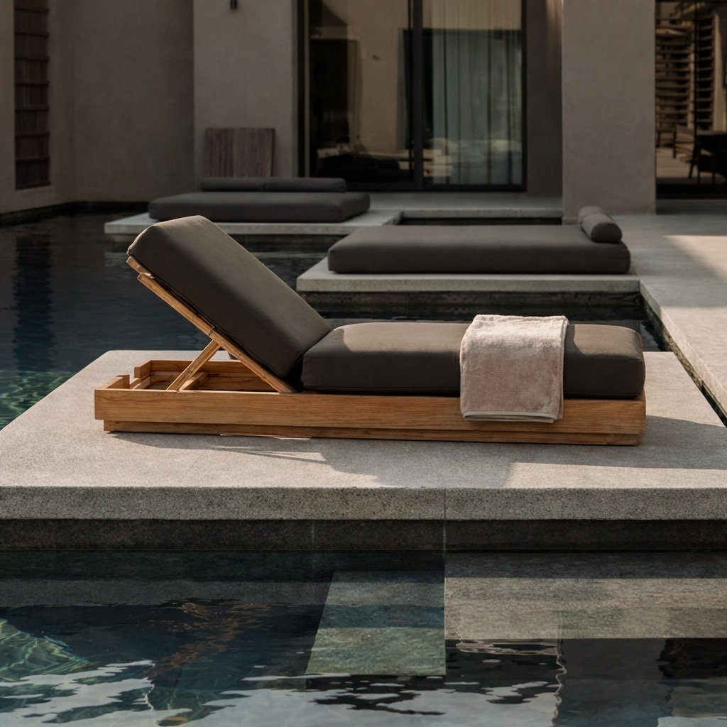 Create a calm outdoor retreat with this Modern Poolside Lounge With Cushioned Seat And Wooden Base For Outdoor. Designed for poolside and terrace settings, the lounge combines a low-profile wooden base with a generously padded cushion, offering a relaxed place to rest while maintaining a clean and composed outdoor aesthetic.