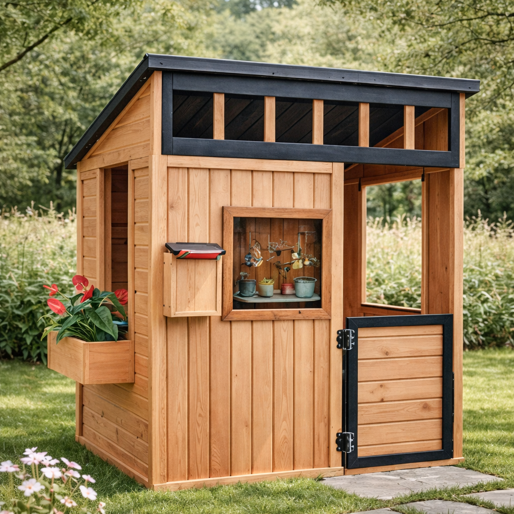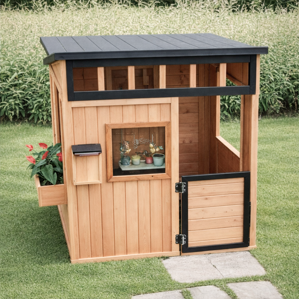 This Modern Natural Wood Kids Playhouse With Serving Window And Half Door For Outdoor works well in: