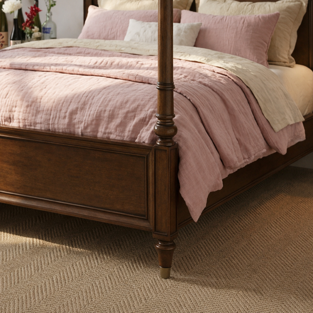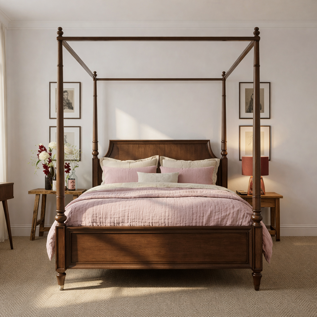Farmhouse Wooden Canopy Bed Frame For Bedroom