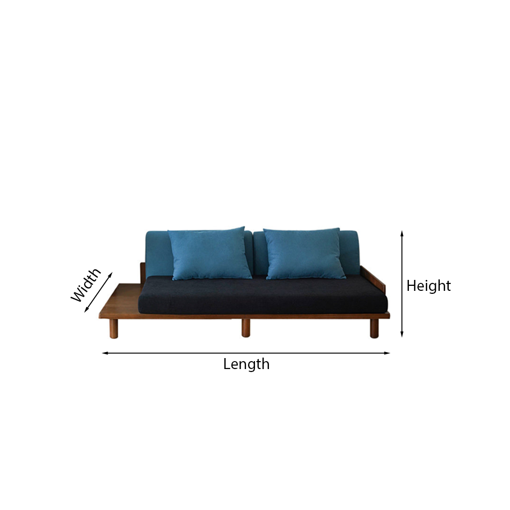 Modern Low Platform Sofa With Side Shelf And Back Cushions For Living Room