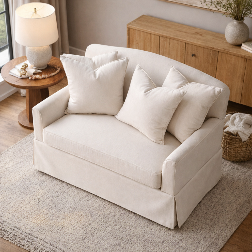 - Living rooms as a soft accent seat beside a sofa or coffee table