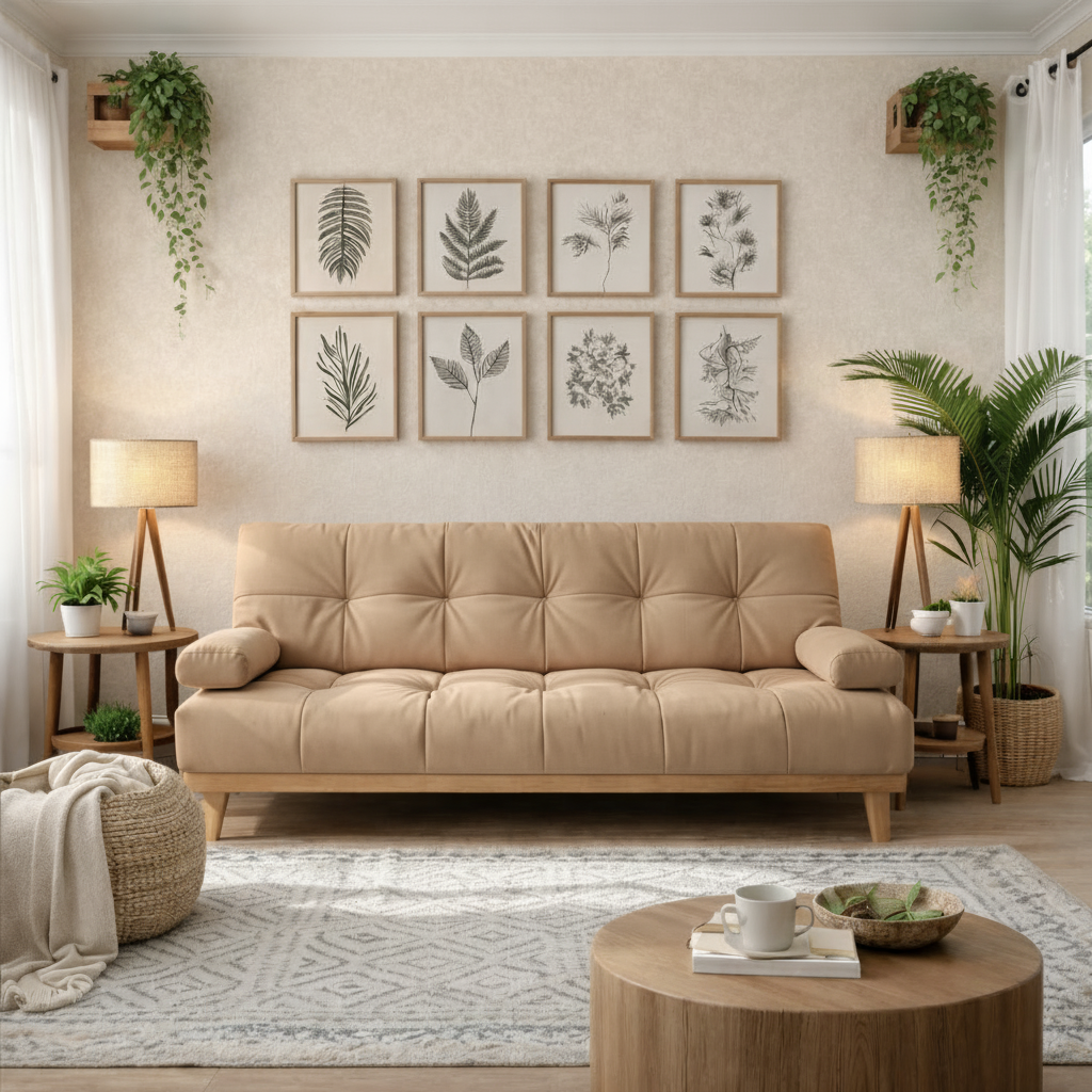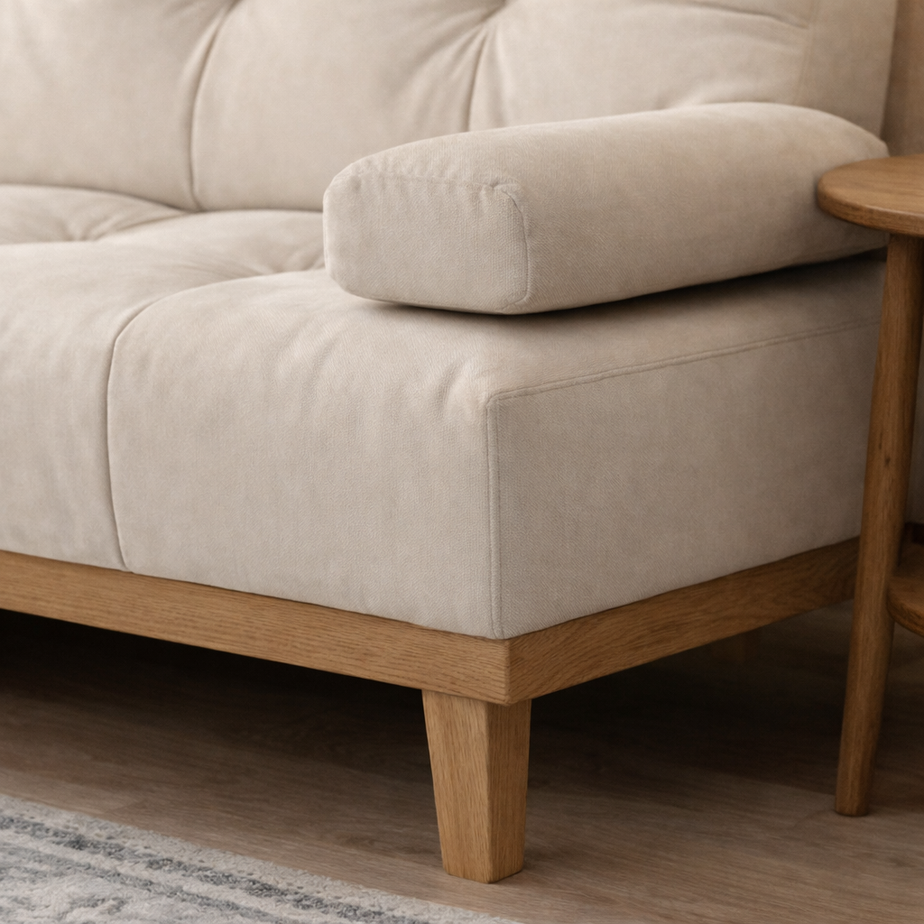 Bring relaxed comfort and understated warmth into the living room with this modern natural wood frame sofa with tufted upholstered seating. Combining clean structure with soft cushioning, this piece creates an inviting focal point that feels practical, balanced, and well suited to contemporary interiors.