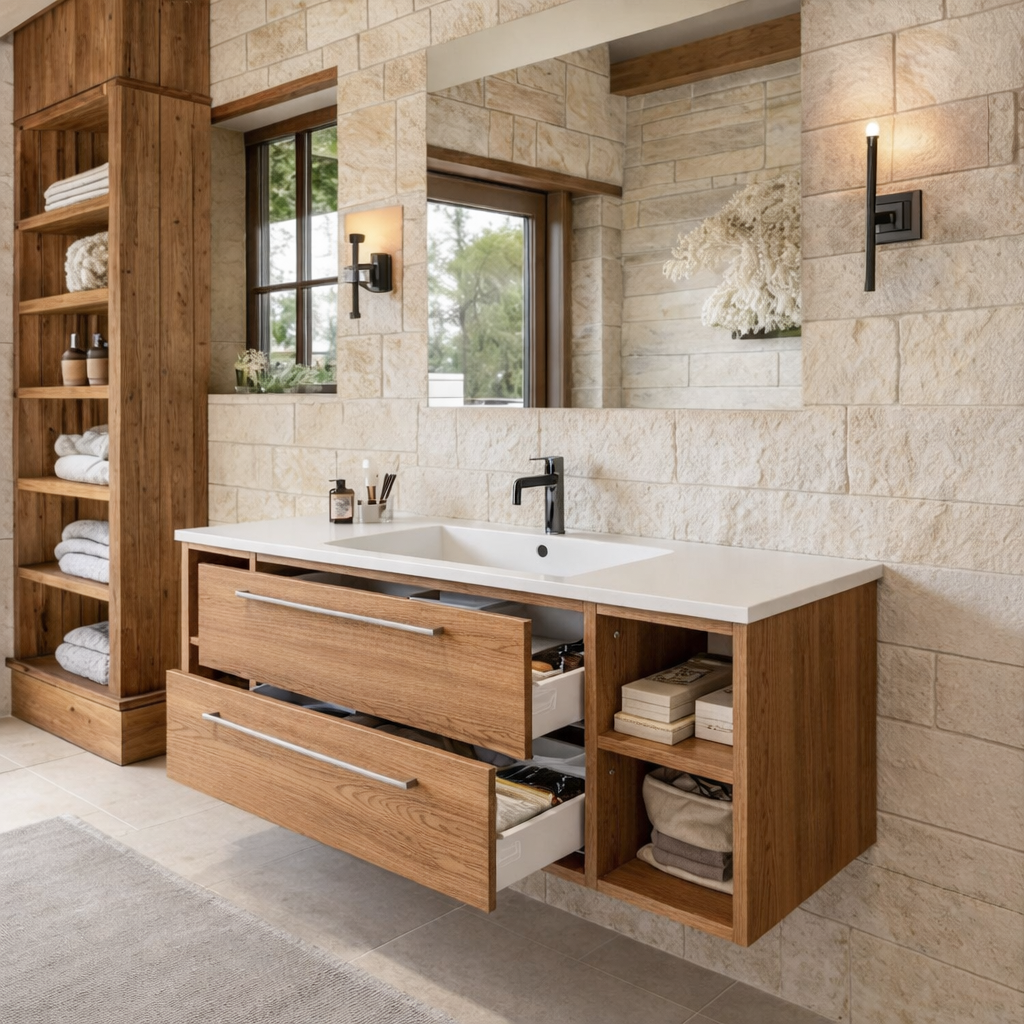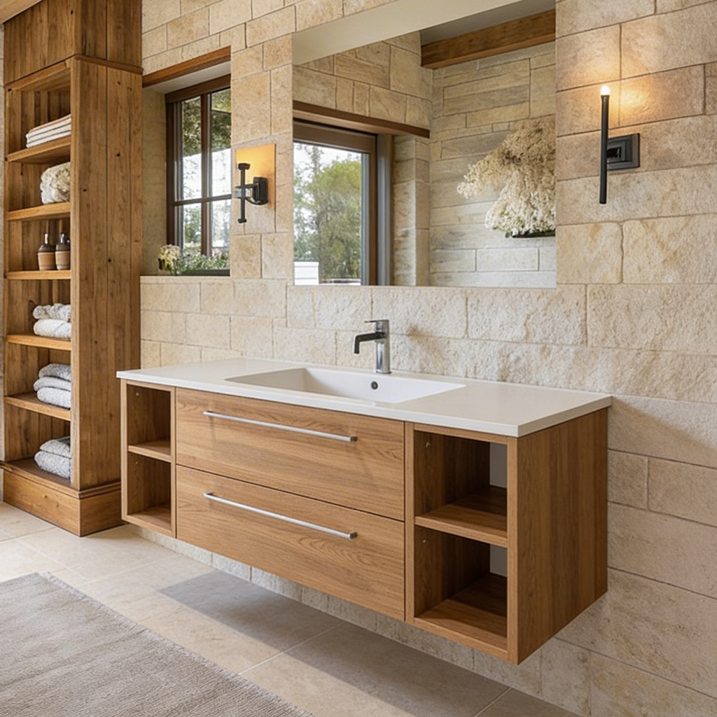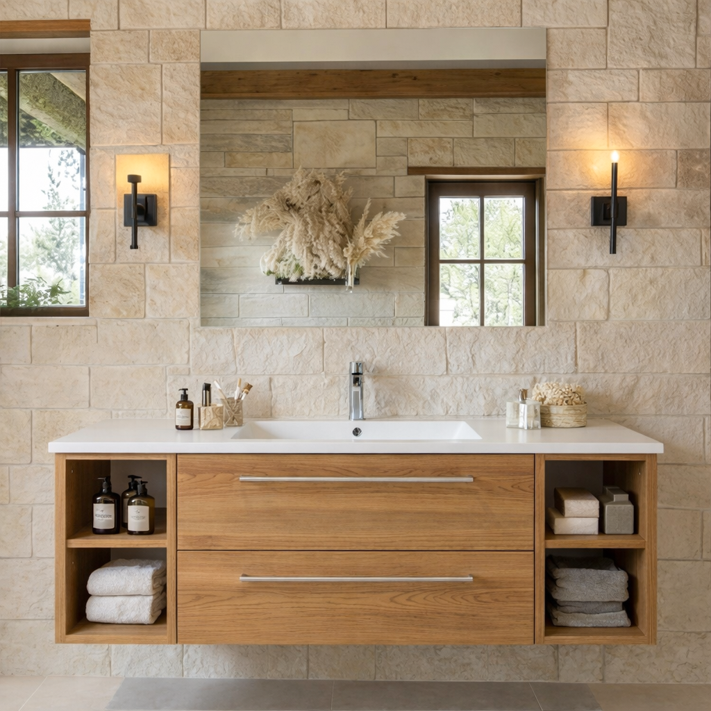 - Renovation projects seeking a streamlined, wall-friendly vanity profile