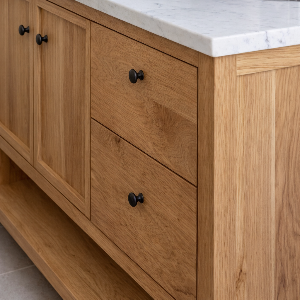 - Primary bathrooms that need more concealed storage without a bulky look