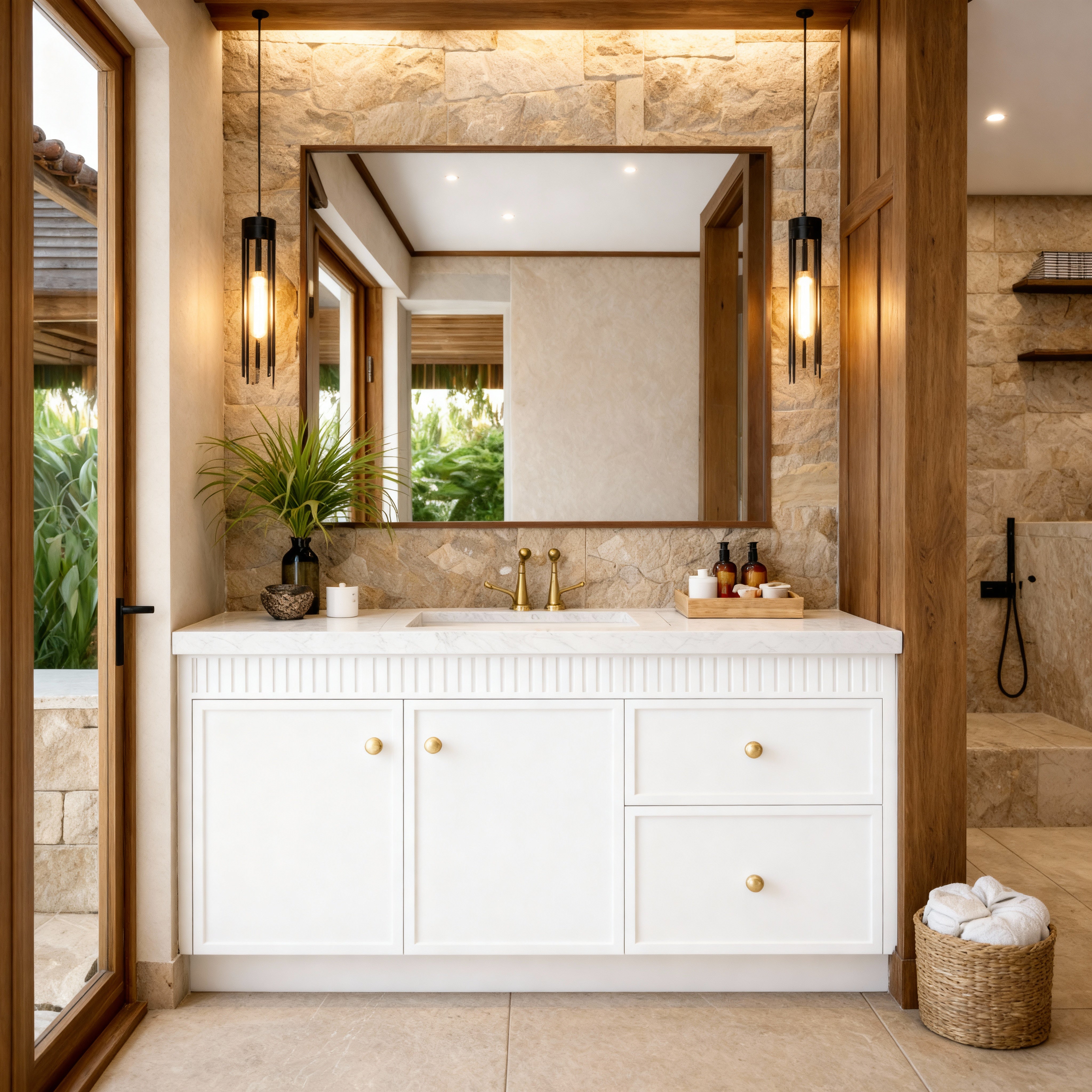 - Primary bathrooms that need a refined storage upgrade with a warm, modern feel