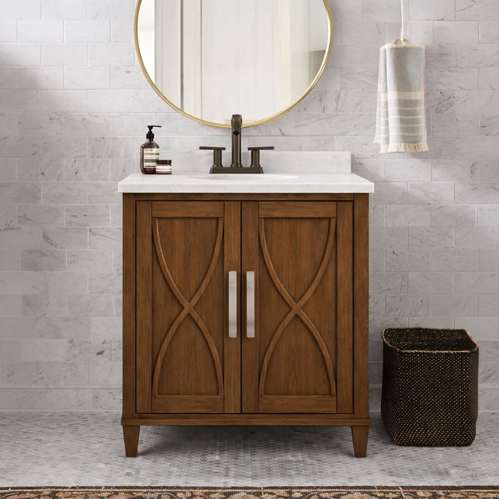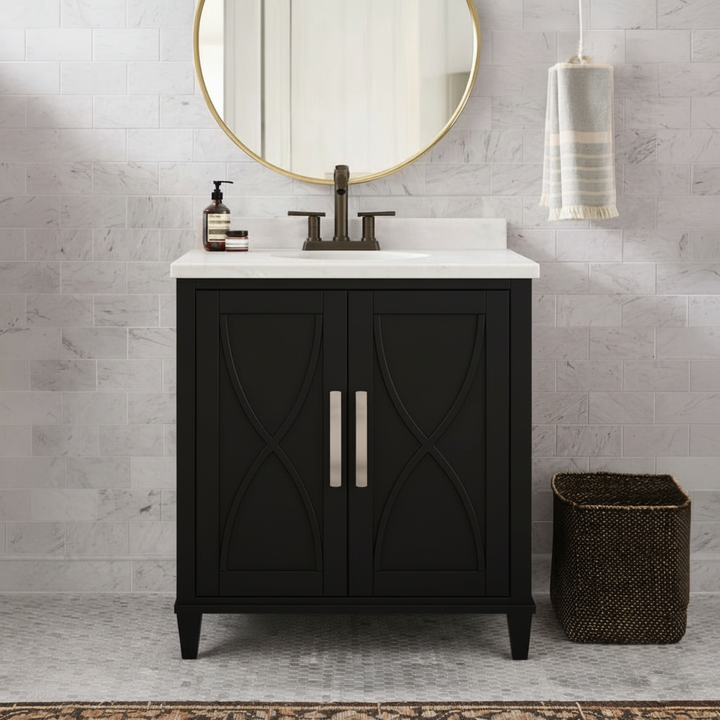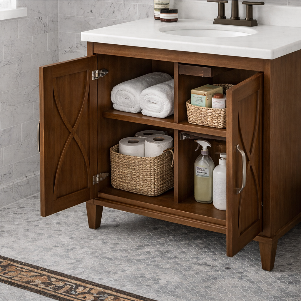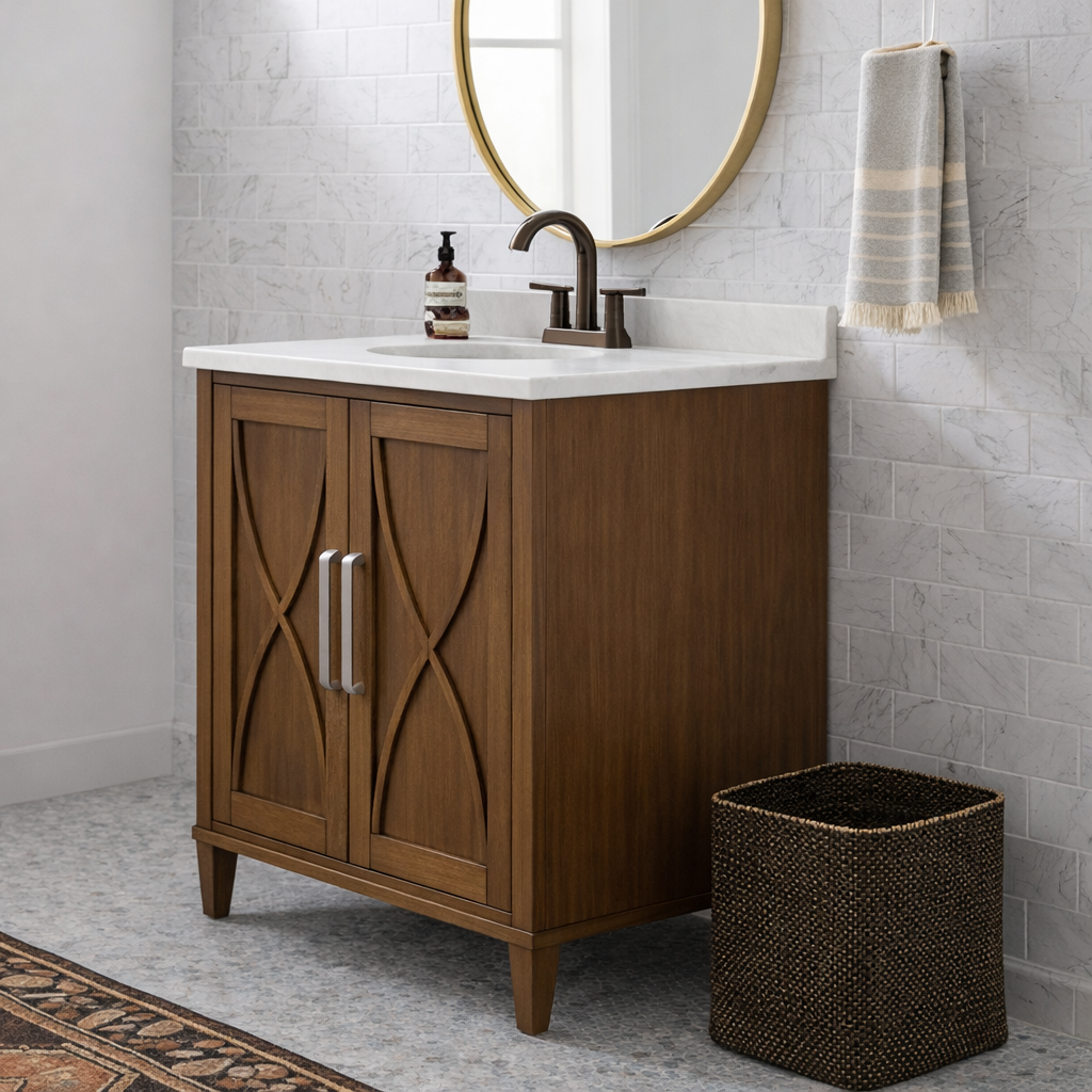- Guest bathrooms that need organized storage without an oversized vanity footprint