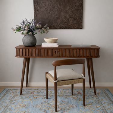 Elevate your home office with this Modern Wooden Desk With Ribbed Front And Storage For Home Office. Designed to combine style and function, this desk features a sleek, contemporary wood finish and distinctive ribbed detailing, offering both a functional workspace and an elegant aesthetic.
