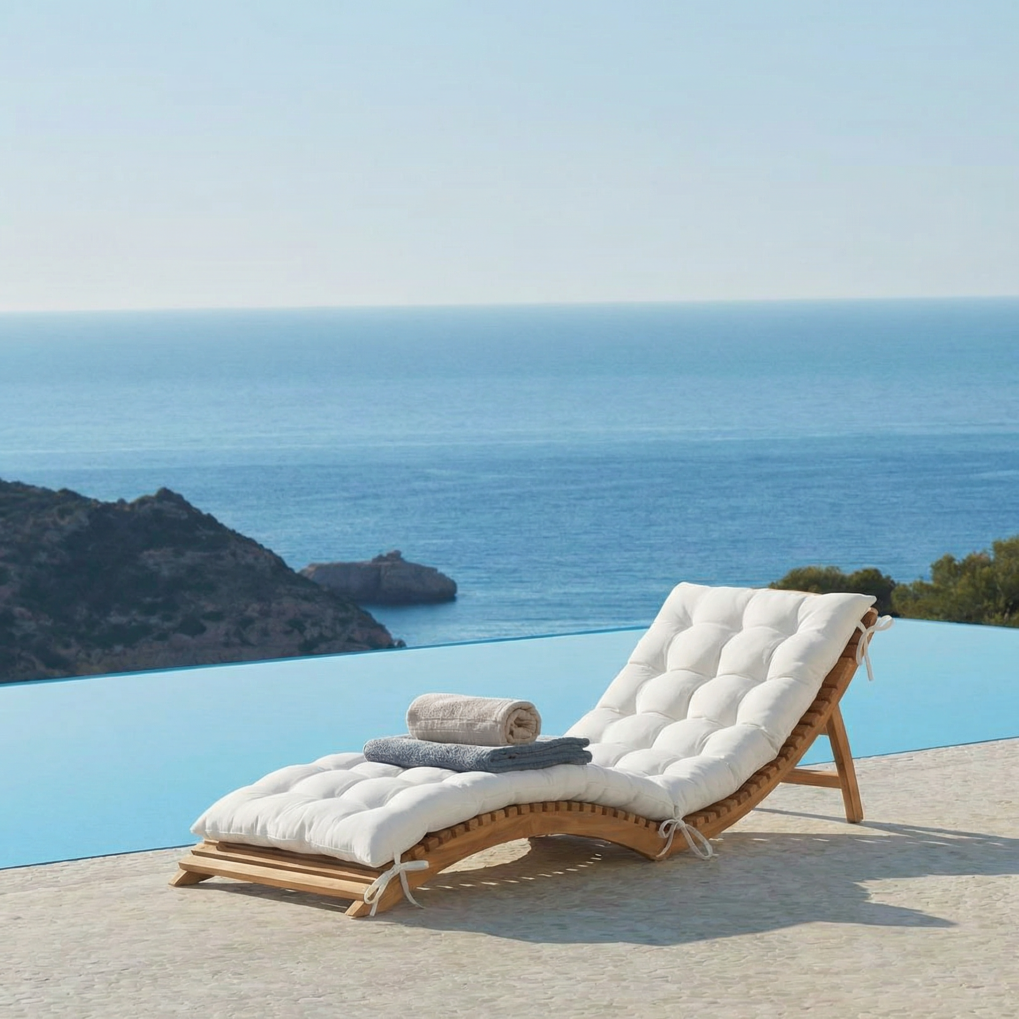 Create a calm, resort-inspired atmosphere with this Modern Wooden Outdoor Lounge Chair With Slatted Base And Cushioned Seat. Designed for relaxed outdoor living, the gently curved profile and soft cushion invite you to unwind while keeping the space visually light and refined.