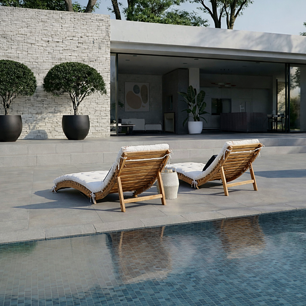 - Resort-style outdoor spaces that favor clean lines and natural materials